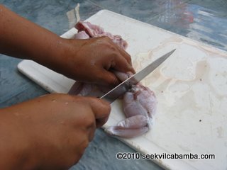 The lady took no time and in a few minutes the frog was turned into legs and breast,